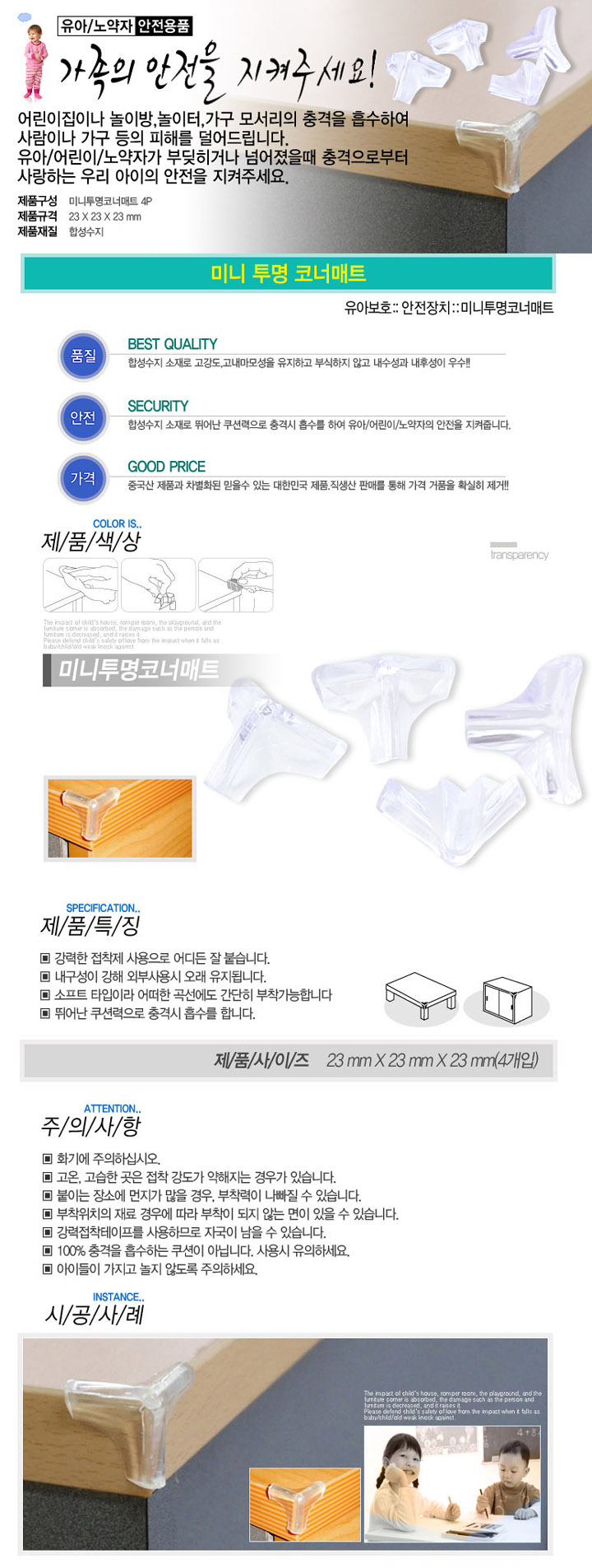 [LP]Äڳʺ¸È£´ë(PVC, 23x23x23mm, ¹Ì´ÏÅõ¸íÄÚ³Ê¸ÅÆ®/4°³¹­À½)(Safety cushion tape/Corner Guard/Edge protector)