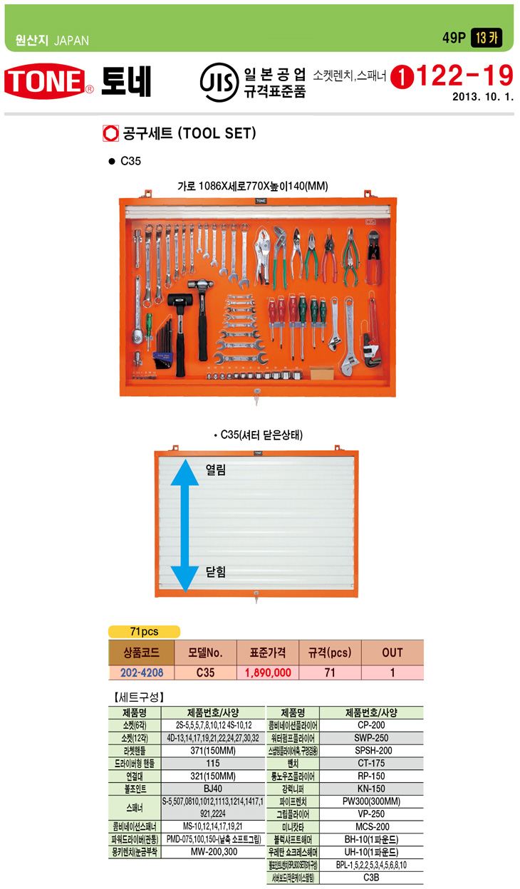 [Åä³×] °ø±¸¼¼Æ®(C-35, 1086x770x40mm, 71Á¾)(Tool Set)