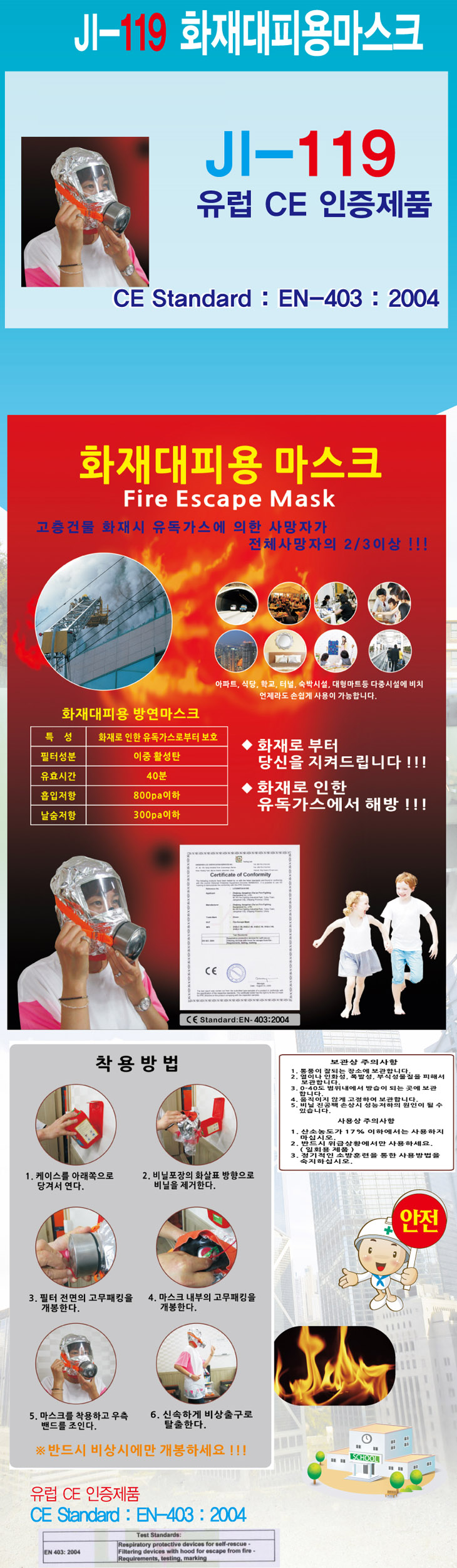 [Á¦ÀÏ] È­Àç´ëÇǸ¶½ºÅ©(JI-119, 120x260mm, ÀÌÁßȰ¼ºÅº, À¯µ¶°¡½º¸¶½ºÅ©)(Fire Escape Mask)