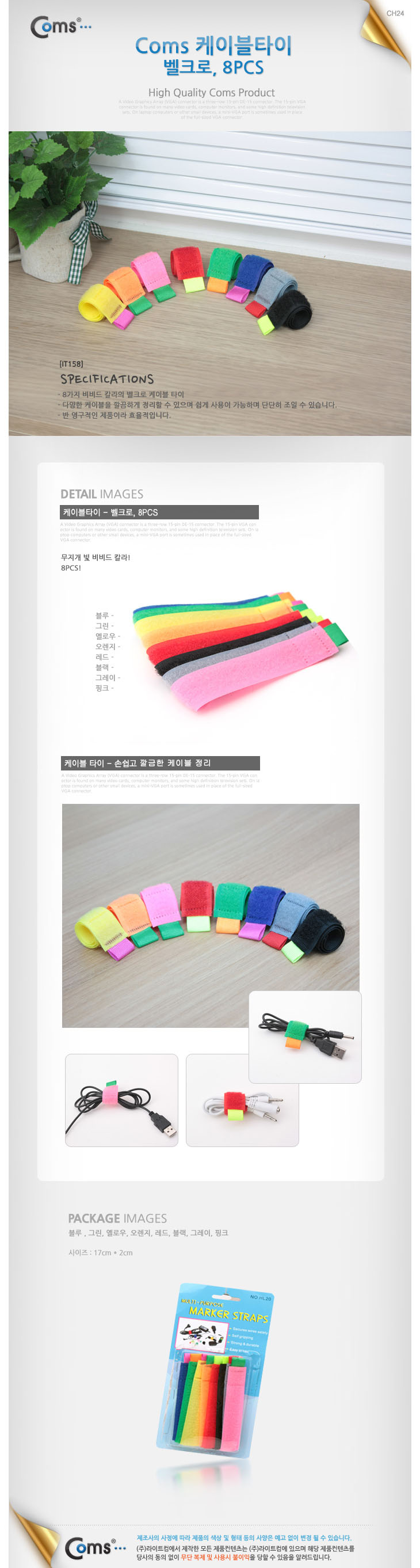 [COMS] º§Å©·Î ÄÉÀ̺í ŸÀÌ(IT158, 8»ö/8°³ ¹­À½, ±æÀÌ:170mm x Æø:20mm)