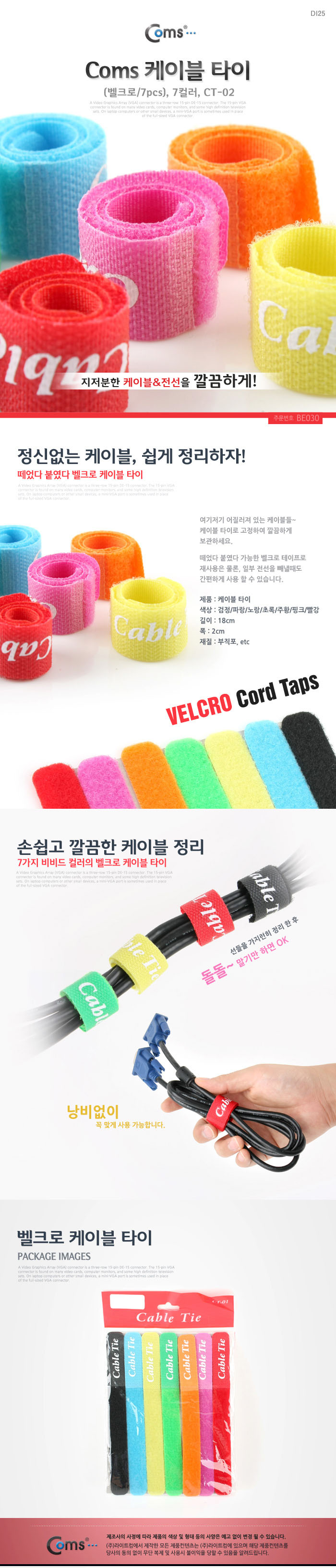 [COMS] º§Å©·Î ÄÉÀ̺í ŸÀÌ(BE030, 7»ö/7°³ ¹­À½, ±æÀÌ:180mm x Æø:20mm)