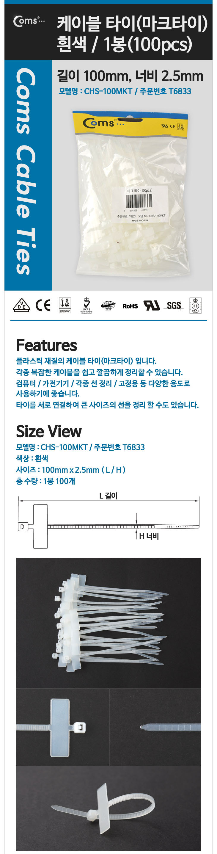 [COMS] ÄÉÀ̺íŸÀÌ/³×ÀÓŸÀÌ/¸¶Å©Å¸ÀÌ(CHS-100MKT/100x2.5mm, ¹é»ö)