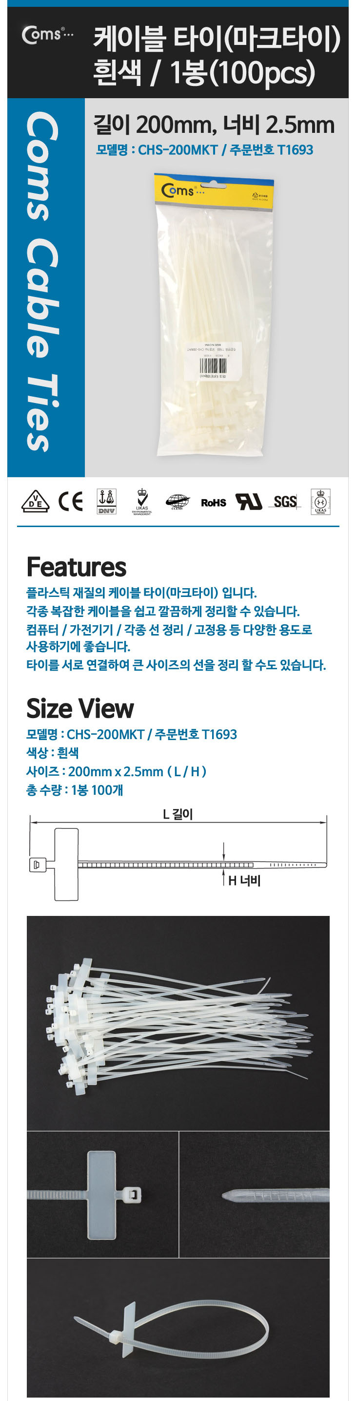 [COMS] ÄÉÀ̺íŸÀÌ/³×ÀÓŸÀÌ/¸¶Å©Å¸ÀÌ(CHS-200MKT/200x2.5mm, ¹é»ö)
