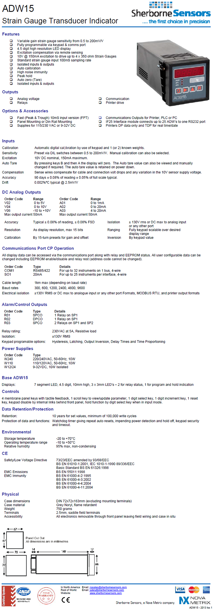 [Sherborne Sensors] ½ºÆ®·¹ÀΰÔÀÌÁö Æ®·£µà¼­/ÀεðÄÉÀÌÆ®(Strain Gauge Transducer Indicator ADW15)