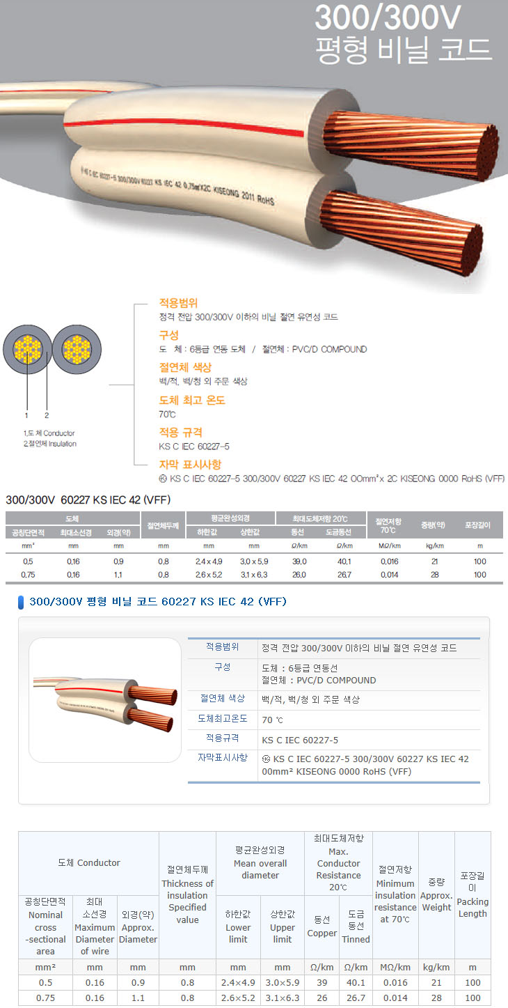 [KS]Àü¿øÄÉÀ̺í 300/300V ÆòÇü ºñ´Ò ÄÚµå 60227 KS IEC 42 (VFF)