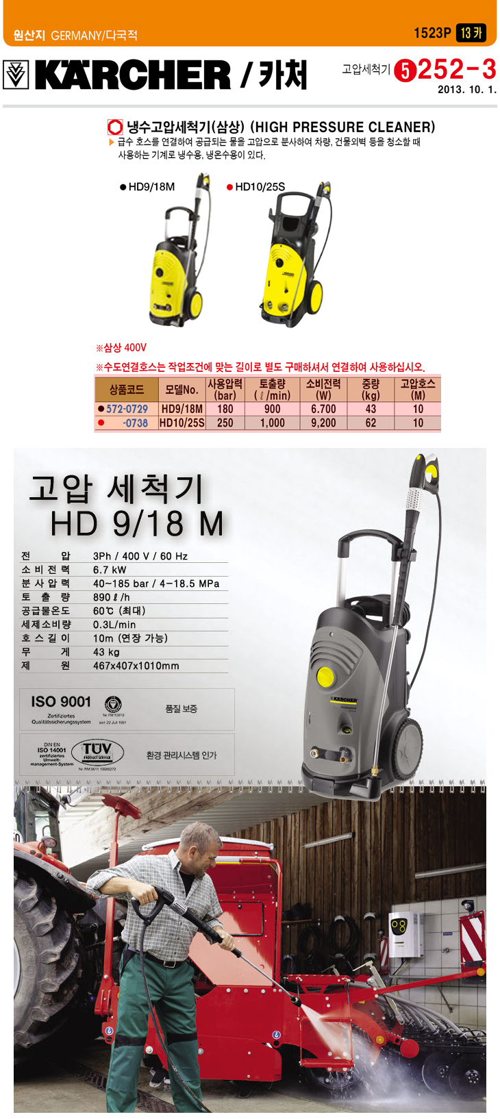 [īó] ³Ã¼ö 3»ó °í¾Ð¼¼Ã´±â(HD9/18 M, 40~185Bar)(High Pressure Cleaner)(ÁÖ¹®Àü °ßÀû¹®ÀÇ)