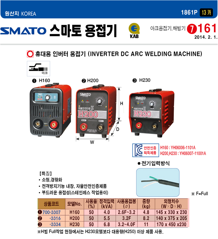 [SMATO] ÈÞ´ë¿ë ÀιöÅÍ ¿ëÁ¢±â(H160, 4.0kVA)(Inverter DC ARC Welding Machine)