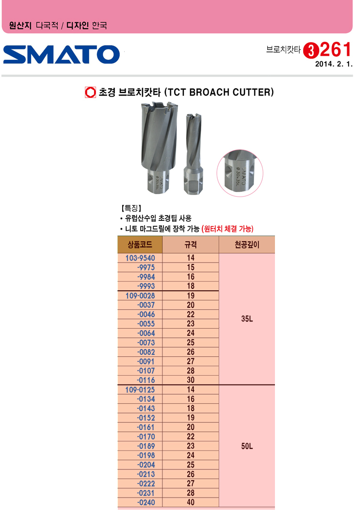 [SMATO] ½º¸¶Åä ÃÊ°æ ºê·ÎġıŸ(õ°ø±íÀÌ:35mm, 14~30ÆÄÀÌ)(TCT Broach Cutter)