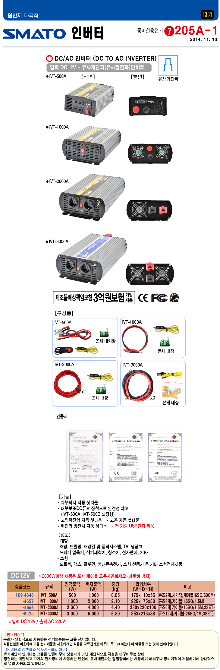 [SMATO] ½º¸¶Åä DC/AC ÀιöÅÍ(IVT-1000A, ÀÔ·Â:12VDC/Ãâ·Â:220VAC 1000Watt, À¯»ç°è´ÜÆÄ ÀιöÅÍ)(DC to AC Inverter)