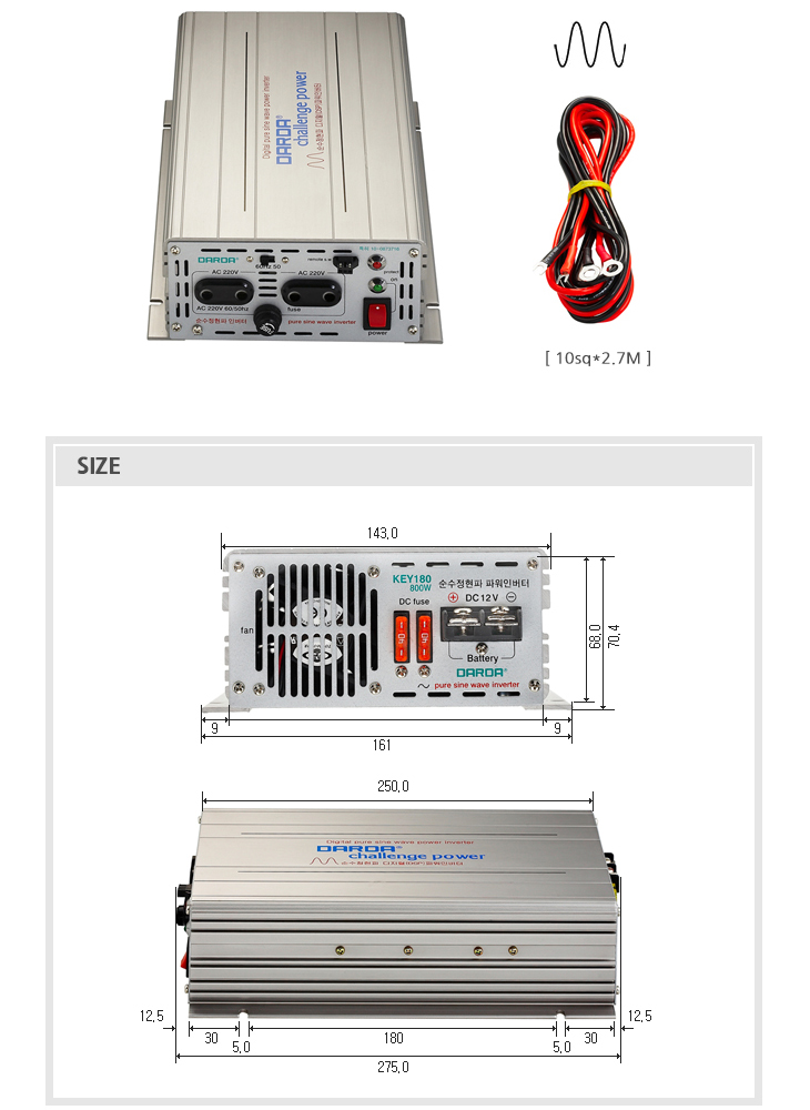 [DARDA] ´Ù¸£´Ù DC/ACÀιöÅÍ(KEY180, ÀÔ·Â:12VDC/Ãâ·Â:220VAC 800Watt, Á¤ÇöÆÄ ÀιöÅÍ)(DC to AC Inverter)(ÁÖ¹®Àü Àç°íÈ®ÀÎ)