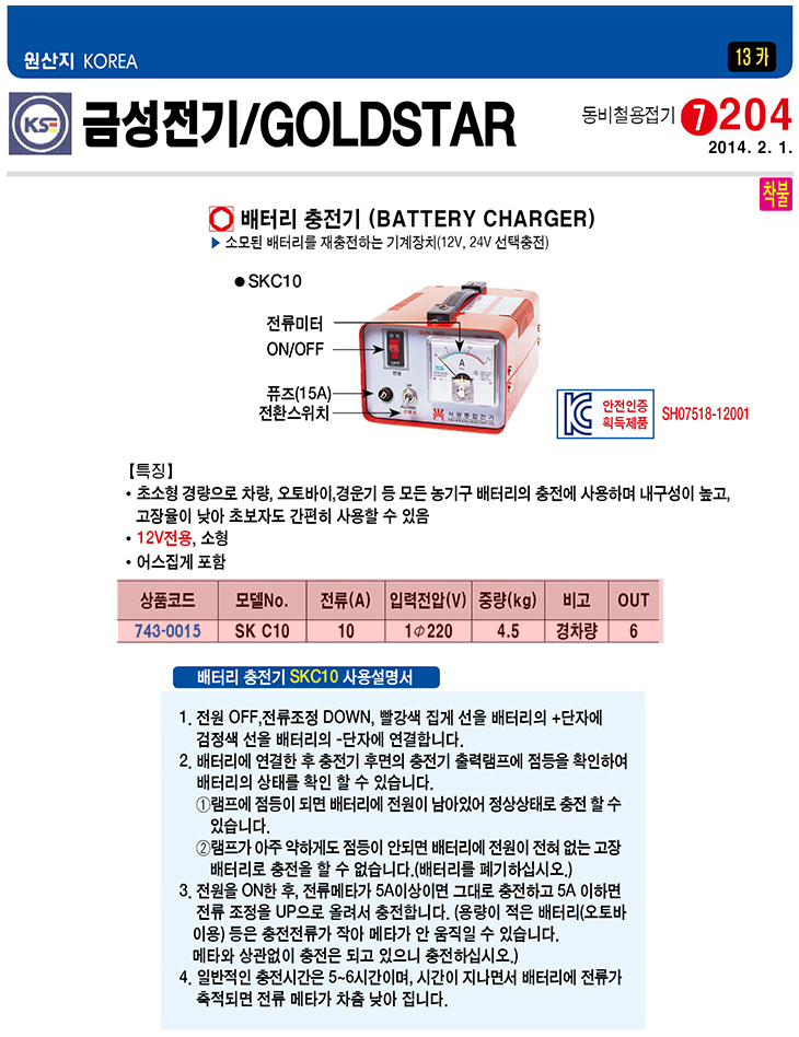[±Ý¼º] ¹èÅ͸® ÃæÀü±â(SKC10, 12/24V¼±ÅÃÃæÀü, 10Amps)(Battery Charger)