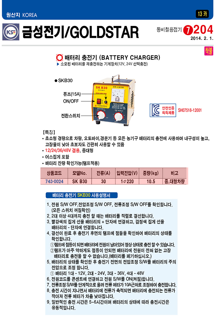 [±Ý¼º] ¹èÅ͸® ÃæÀü±â(SKB30, 12/24/36/48V¼±ÅÃÃæÀü, 30Amps)(Battery Charger)
