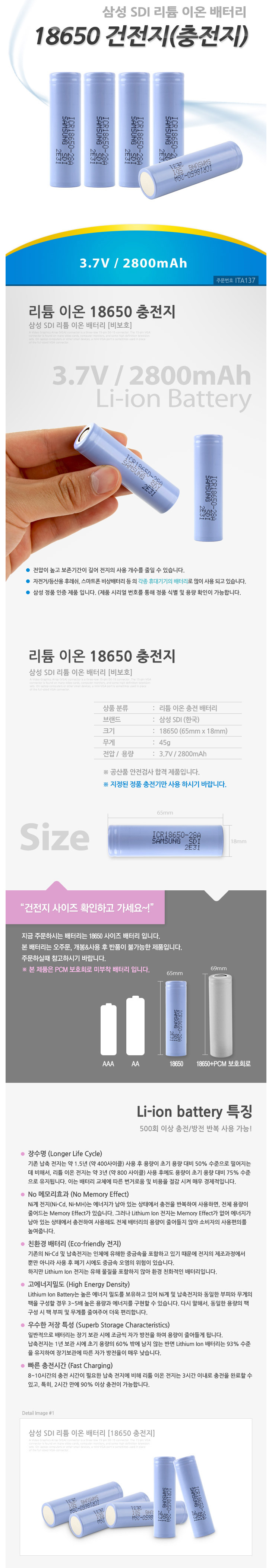 [»ï¼ºSDI] ¸®Æ¬ÀÌ¿Â ÃæÀüÁö(ICR18650-28A, 3.7V 2800mAh)=>»ý»êÁß´Ü!