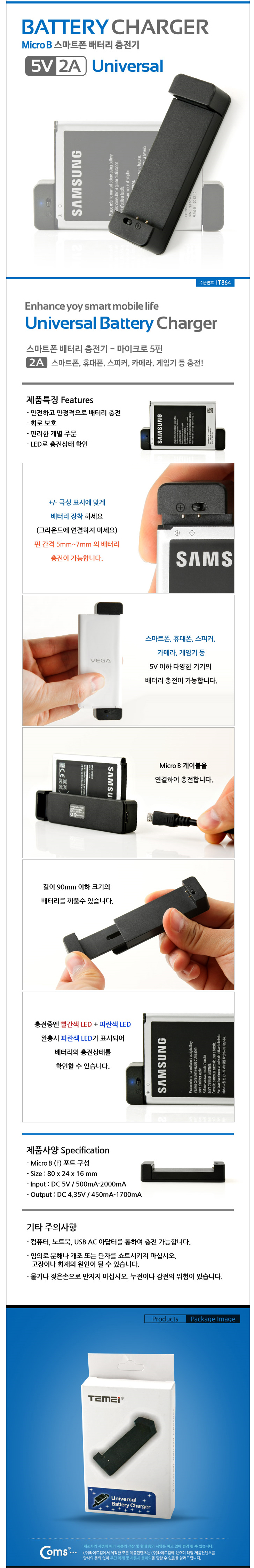 [COMS] ¹èÅ͸® ÃæÀü±â(Micro B, ½º¸¶Æ®Æù ¹èÅ͸®ÃæÀü, 2A, 80x24x16mm)