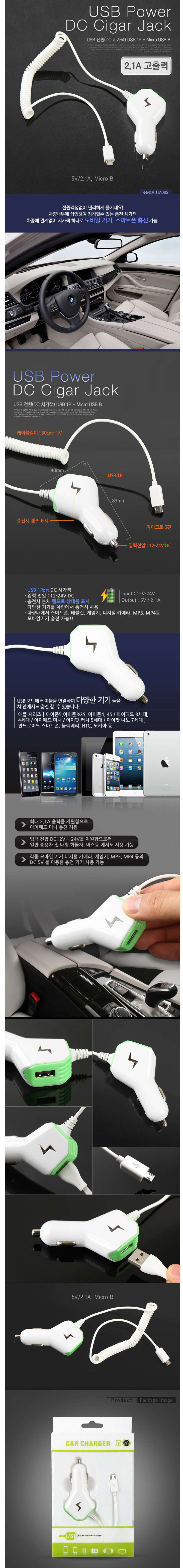 [COMS] Â÷·®¿ë USB 1P ½Ã°¡Àè+ÃæÀüÄÉÀ̺í(Micro B, 5V/2.1A)