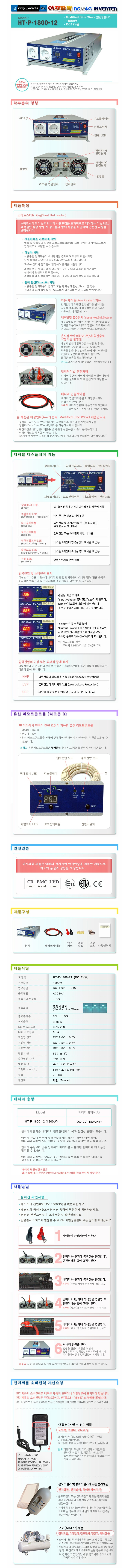 [IZZY] izzy Power Pro ÀιöÅÍ(HT-P-1800-12, DC12V¿ë/1800W, Á¤°ÝÃâ·Â/½º¸¶Æ®½ºÅ¸Æ® ±â´É/LEDµð½ºÇ÷¹ÀÌ ±âº»ÀåÂø)