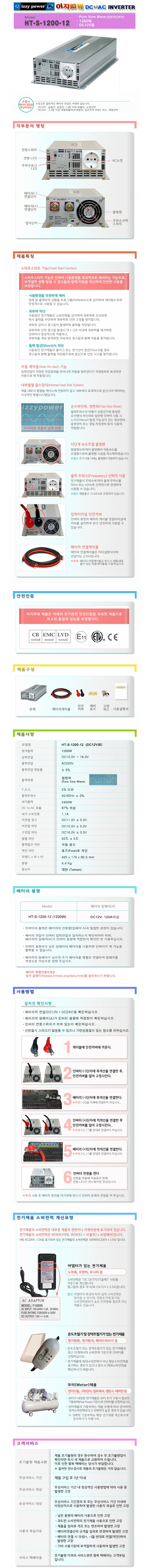[IZZY] izzy Power Á¤ÇöÆÄ ÀιöÅÍ(HT-S-1200-12, DC12V/1200W, ½º¸¶Æ®½ºÅ¸Æ® ±â´É/AC¼ÒÄÏÀÇ Ãâ·ÂÇÕ¼±½Ã Â÷´Ü±â´É/ÀÌÁöÆÄ¿ö Á¤ÇöÆÄ ÀιöÅÍ)