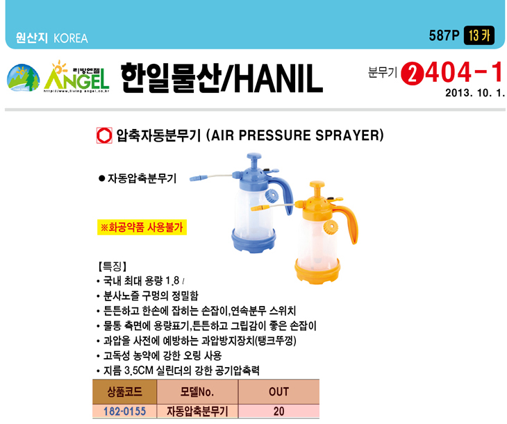 [ÇÑÀÏ] ÀÚµ¿¾ÐÃàºÐ¹«±â(1.8¸®ÅÍ)(Air Pressure Speayer)