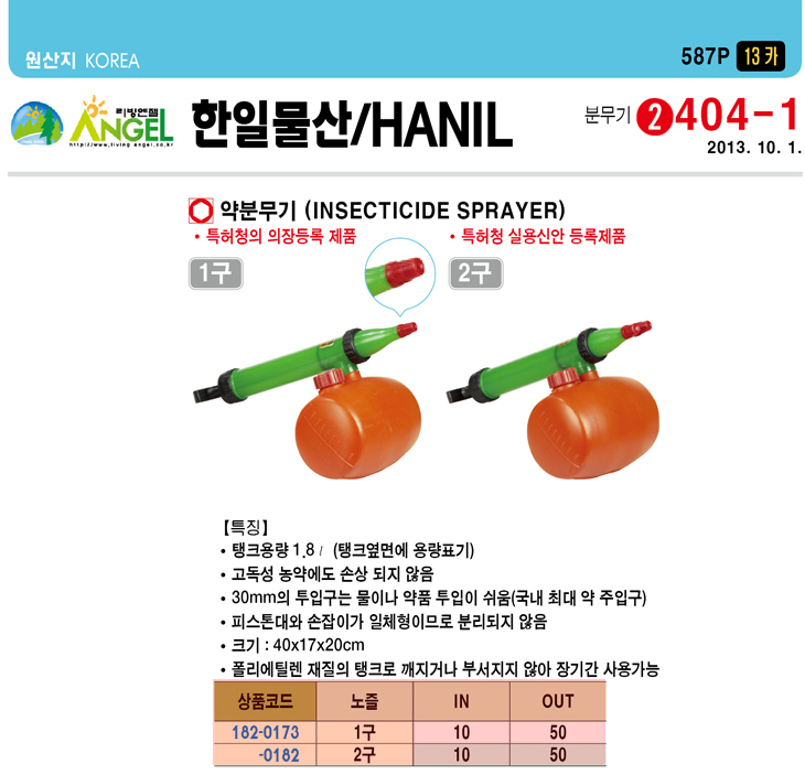 [ÇÑÀÏ] ¾àºÐ¹«±â(1.8¸®ÅÍ, 2±¸)(Insecticide Speayer)