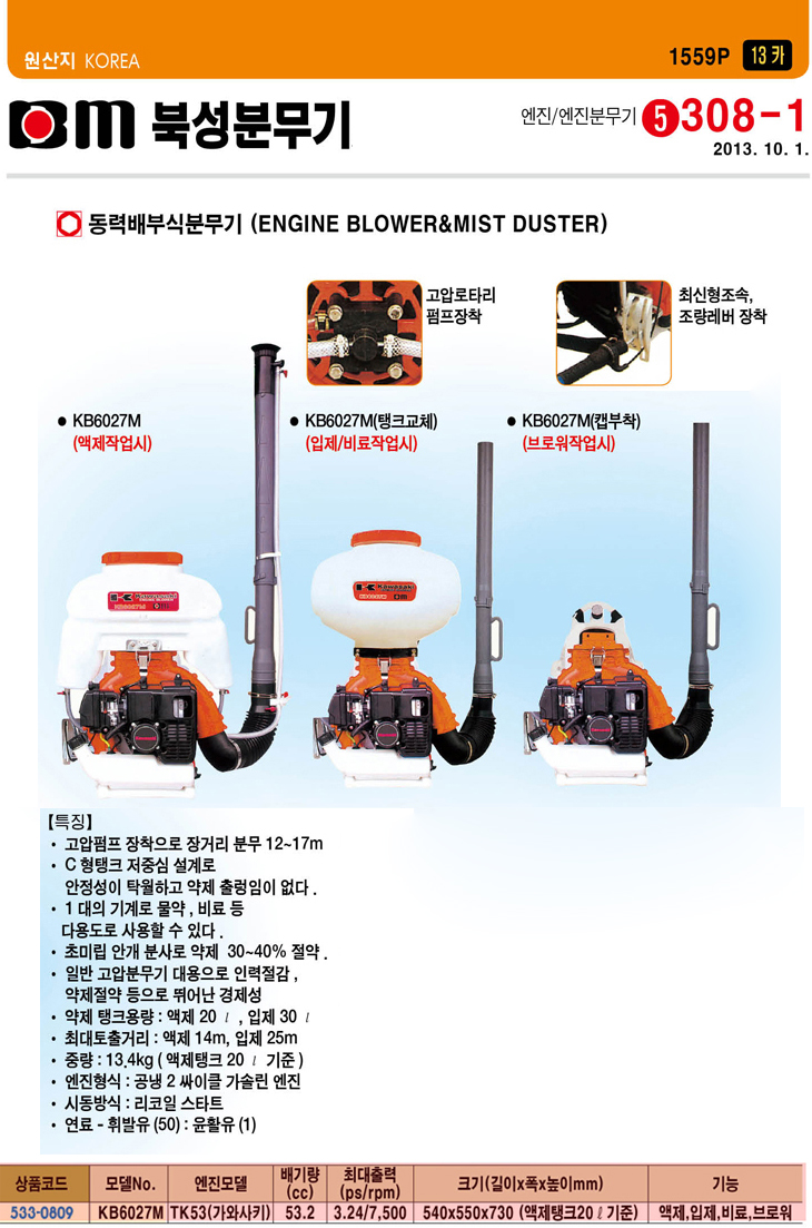 [ºÏ¼º] µ¿·Â¹èºÎ½ÄºÐ¹«±â(KB6027M, °¡¿Í½ÃŰ¿£Áø)(Engine Blower & Mist Duster)(ÁÖ¹®Àü Àç°íÈ®ÀÎ)