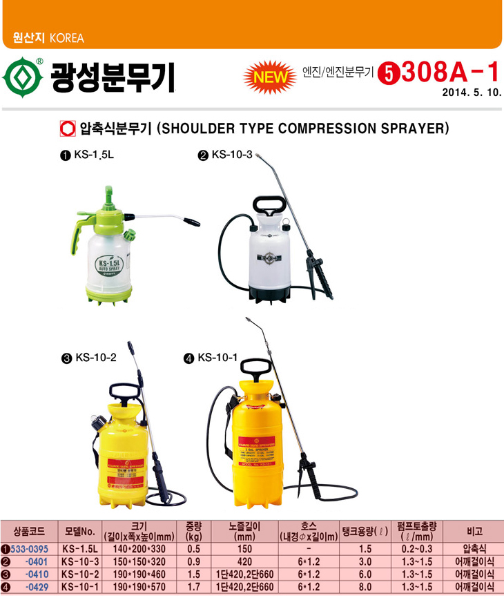 [±¤¼º] ¾ÐÃà½ÄºÐ¹«±â(KS-10-1, 8.0¸®ÅÍ)(Shoulder Type Compression Sprayer)