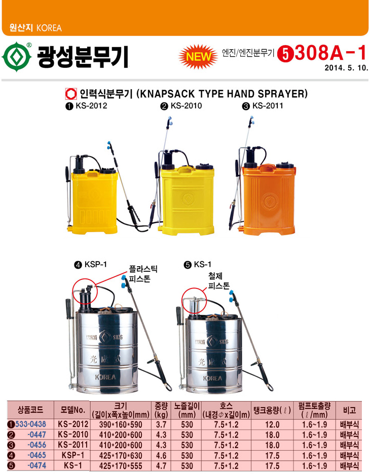 [±¤¼º] Àη½ĺй«±â(KS-2011, 18.0¸®ÅÍ, ¹èºÎ½Ä)(Knapsack Type Hand Sprayer)