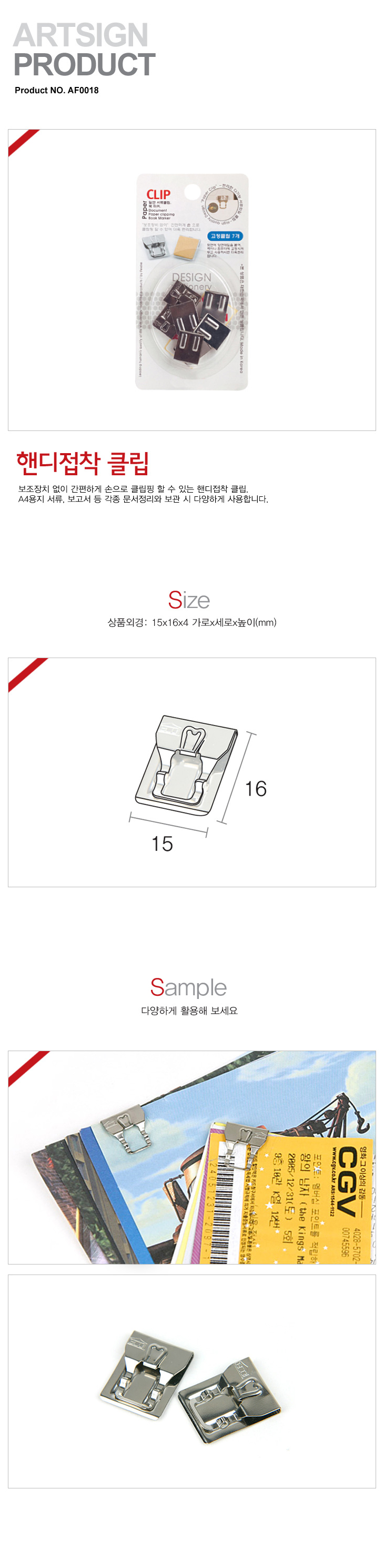 [¾ÆÆ®] ¾ÆÆ®ÇÊ ¼­·ùŬ¸³ ÇÚµðÁ¢ÂøÅ¬¸³(AF0018, 15x16x4mm, 7°³ÀÔ)