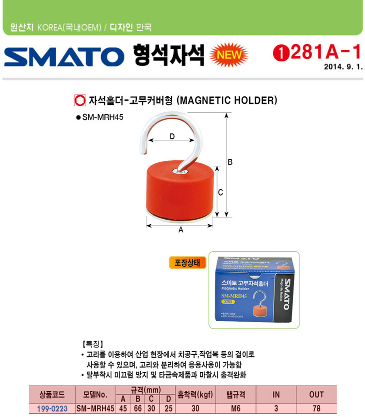 [SMATO] ½º¸¶Åä °í¸®Çü °í¹«Ä¿¹öÇü ÀÚ¼®È¦´õ(SM-MRH45, M6±Ô°Ý, 45x66x30mm)(Magnetic Holder)
