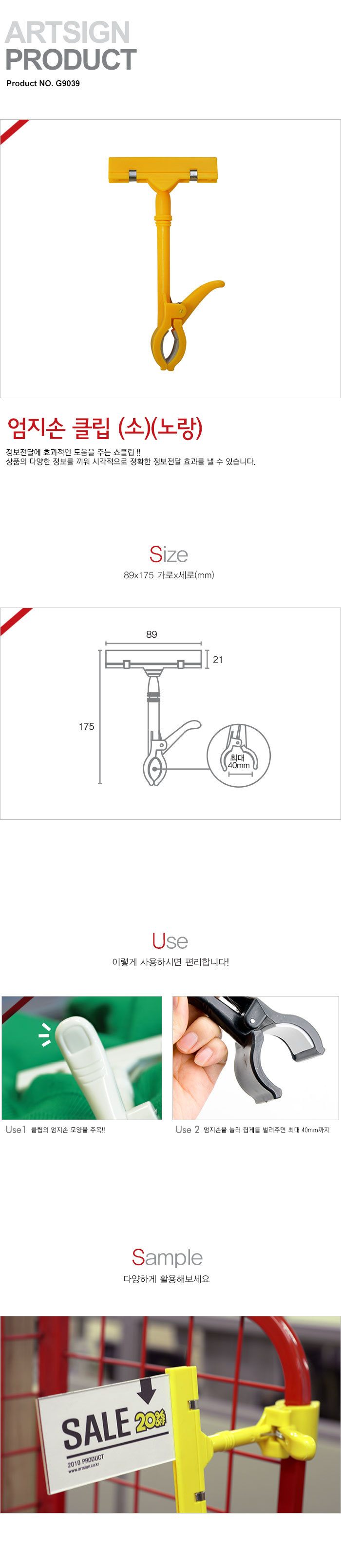 [¾ÆÆ®] ¾öÁö¼Õ Ŭ¸³(G9039, ¼Ò, ³ë¶õ»ö, 89x175mm, ABS)