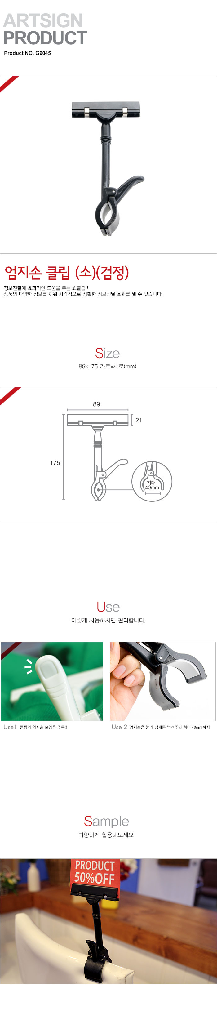 [¾ÆÆ®] ¾öÁö¼Õ Ŭ¸³(G9045, ¼Ò, °ËÁ¤»ö, 89x175mm, ABS)
