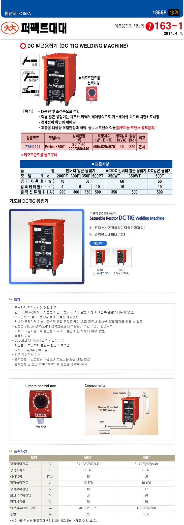 [ÆÛÆåÆ®] DC ¾Ë°ï¿ëÁ¢±â/°¡Æ÷È­ DC TIG ¿ëÁ¢±â(PERFECT-500T, »ï»ó220/380/440VAC, 40KVA, º»Ã¼)