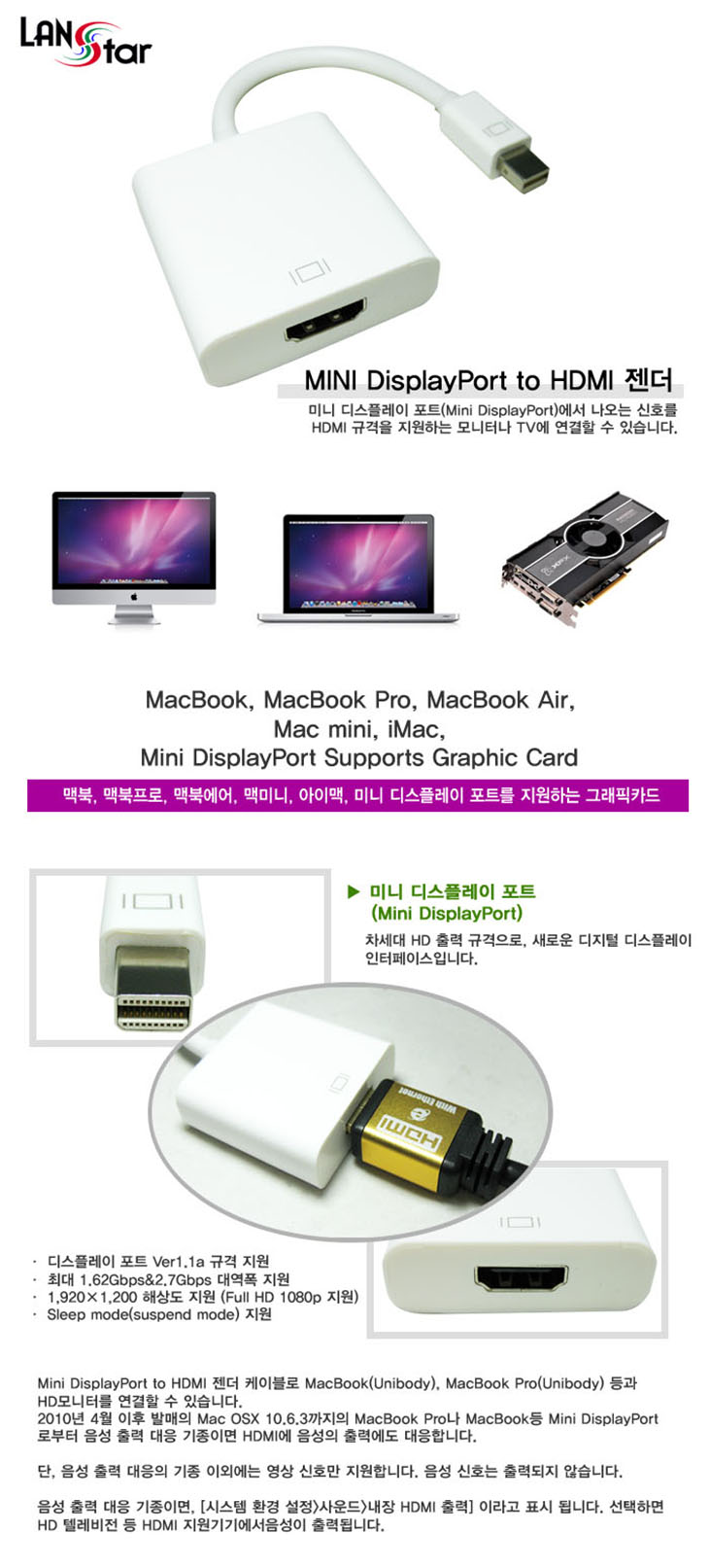 [SL] Mini DisplayPort to HDMI Converter(LS-MDP19, ¹Ì´Ï µð½ºÇ÷¹ÀÌÆ÷Æ® to HDMI ÄÉÀ̺í, Ver 1.1, 0.2m)