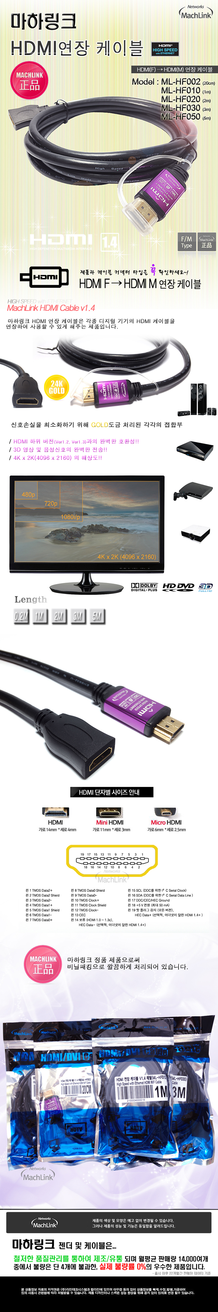 [SL] HDMI ¿¬Àå ÄÉÀ̺í(HDMI M - HDMI F, HDMI¿¬Àå, A type V1.4, Full HD È­Áú Áö¿ø, 4Kx2K, 3D Áö¿ø, ¿µ»ó+À½¼º Áö¿ø)