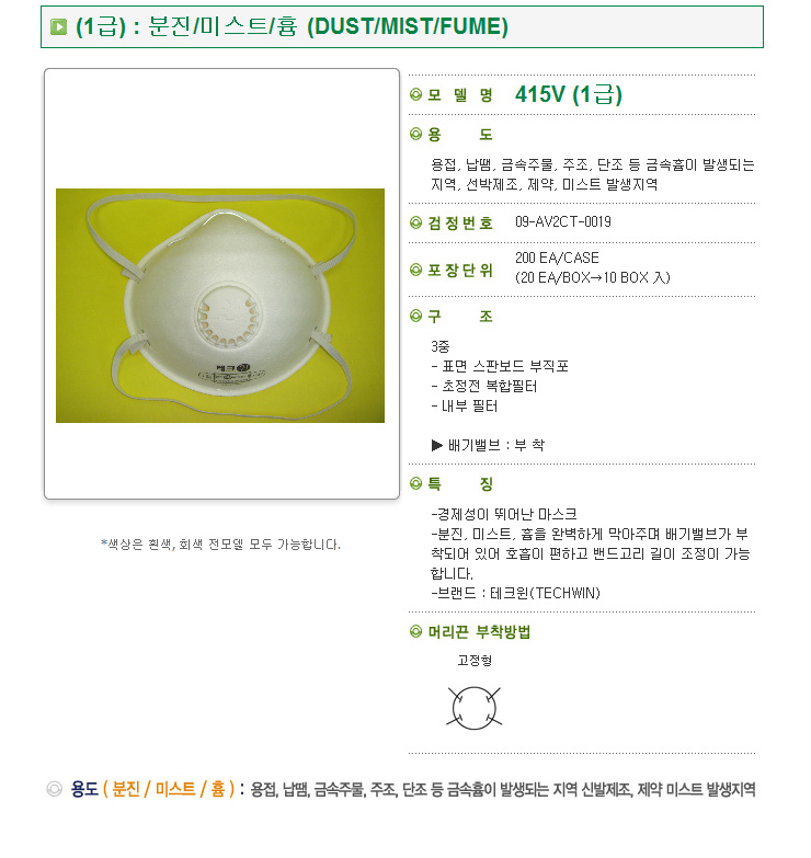 [Å©¸°Å¾]1±Þ¹æÁø¸¶½ºÅ© º¸±ÞÇü(415VWS, ºÐÁø/¹Ì½ºÆ®/³¿»õ, ¹è±â¹ëºêÀåÂø)(20°³ 1¹Ú½º)(¿ëÁ¢/³³¶«/±Ý¼ÓÈâ¹ß»ýÁö¿ª)=>Á¦Ç°´ÜÁ¾:´ëü»óǰ(VC-100V)