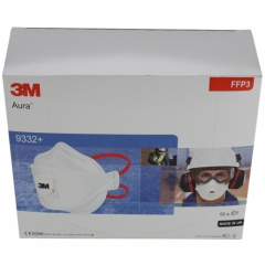 The 3M™ Aura™ Particulate Respirator 9332+ provides comfort and style without compromising performance. Protects against dusts and mists found in a wide variety of industrial applications and other work situations requiring FFP3 protection.