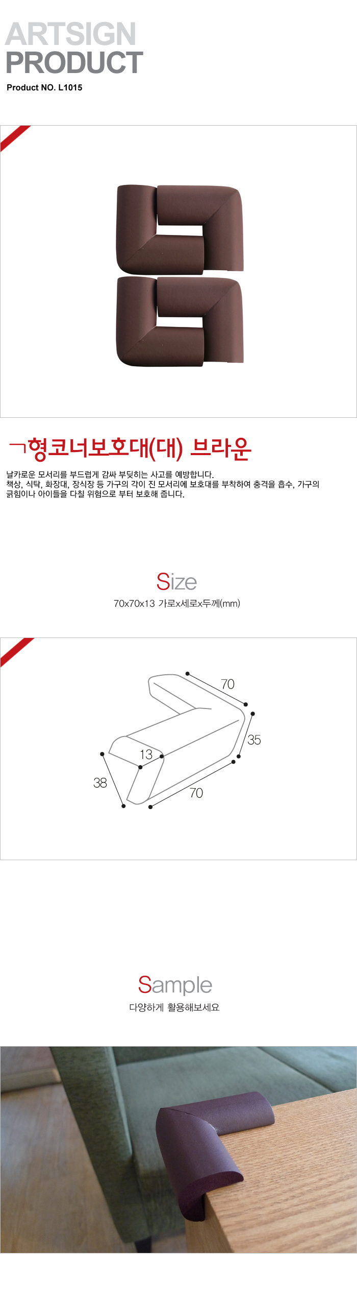 [AT] ¤¡ÇüÄڳʺ¸È£´ë(L1015, ´ëÇü, ºê¶ó¿î, 70x70x13mm, 4°³¹­À½)