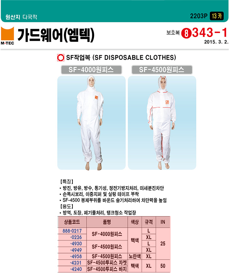 [¿¥ÅØ]°¡µå¿þ¾î º¸È£º¹/ÀÛ¾÷º¹(SF4000, ¿øÇǽº, ¹é»ö, ¹æÁø/¹æ¿À/¹æÀ¯/¹æ¼ö, Á¶·ùÀÎÇ÷翣ÀÚ/½ÅÁ¾Ç÷ç, 25¹ú ¹­À½)