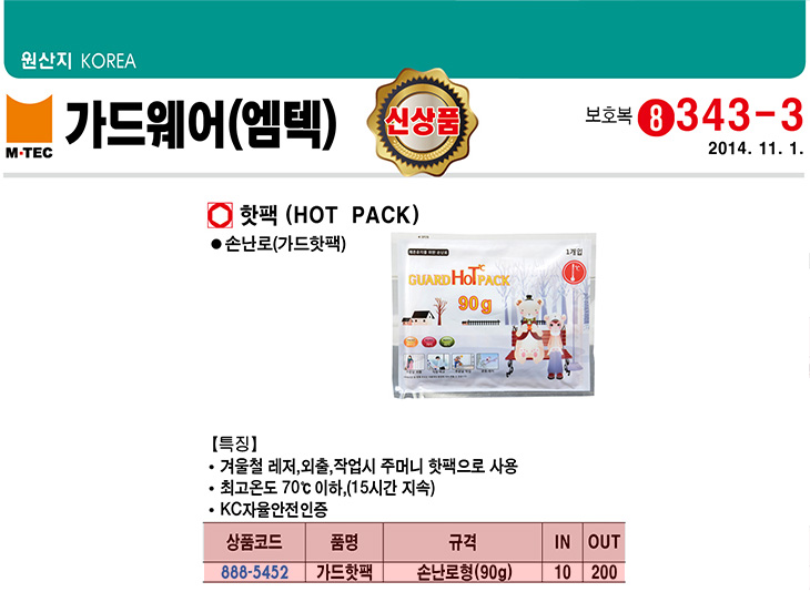 [¿¥ÅØ]°¡µå¿þ¾î ÇÖÆÑ(¼Õ³­·Î/°¡µåÇÖÆÑ, 90g, 10°³¹­À½)(Hot Pack)