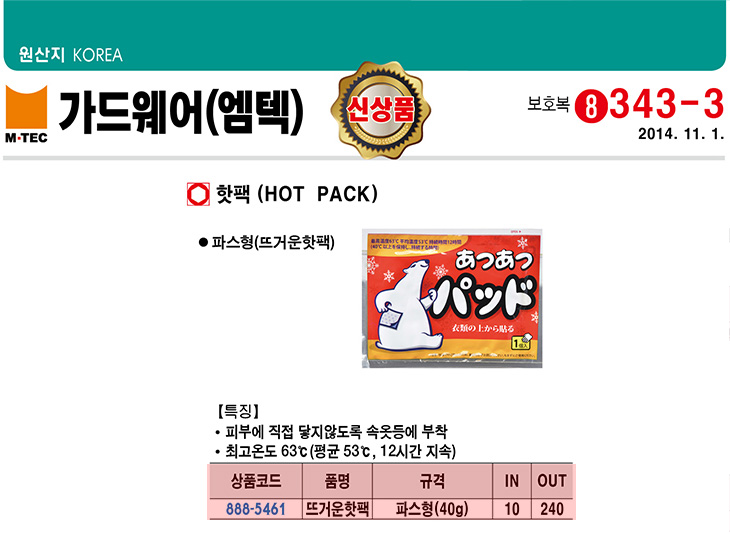 [¿¥ÅØ]°¡µå¿þ¾î ÇÖÆÑ(ÆÄ½ºÇü/¶ß°Å¿î ÇÖÆÑ, 40g, 10°³¹­À½)(Hot Pack)