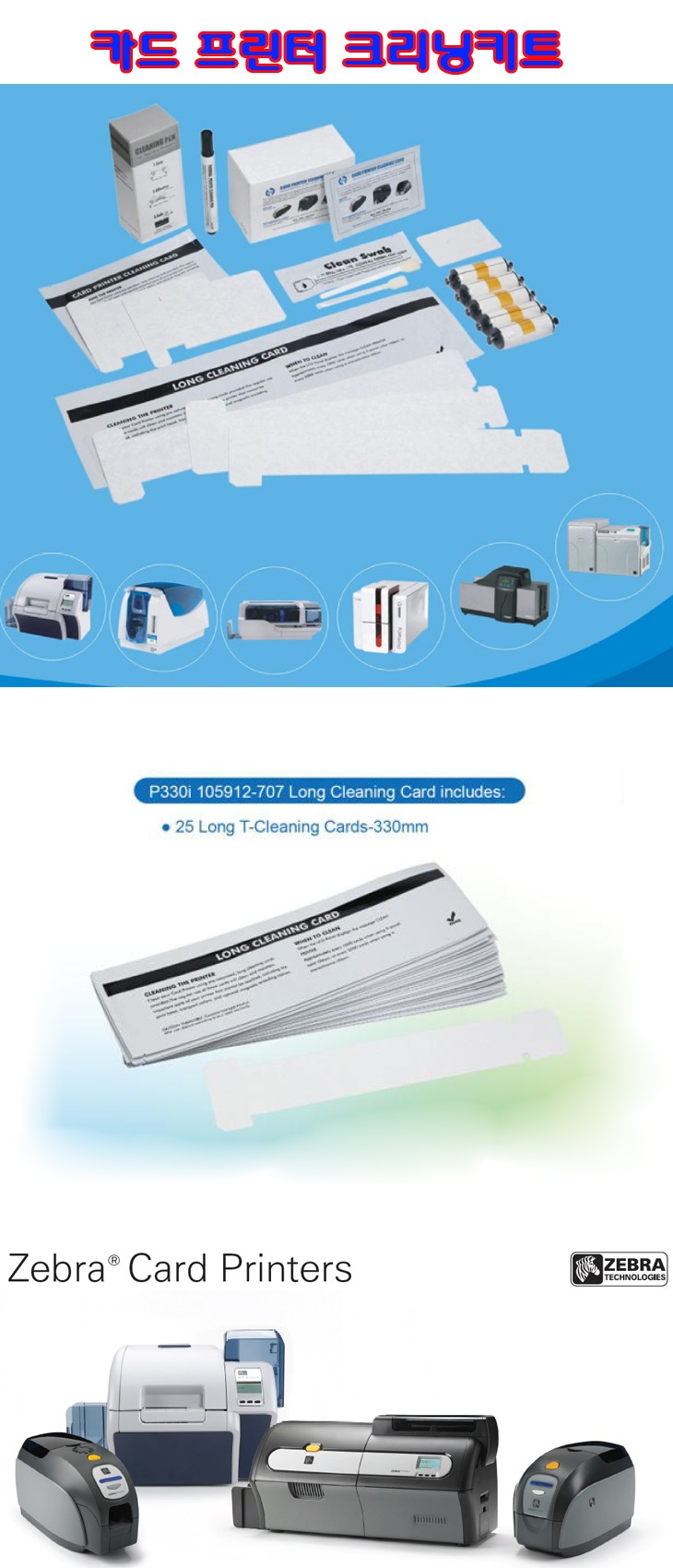 [WT] ½ÅºÐÁõÇÁ¸°ÅÍ/Ä«µåÇÁ¸°ÅÍ¿ë Å©¸®´×Ä«µå(Zebra P330i¿ë, 330mm TÇü, 25¸Å ¹­À½, 105912-707)(Cleaning Kit)