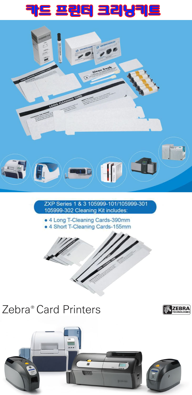 [WT] ½ÅºÐÁõÇÁ¸°ÅÍ/Ä«µåÇÁ¸°ÅÍ¿ë Å©¸®´×ŰƮ(Zebra ZXP1/2½Ã¸®Áî¿ë, 105999-101/301/302, 390mm 4¸Å + 155mm 4¸Å ¹­À½)(Cleaning Kit)