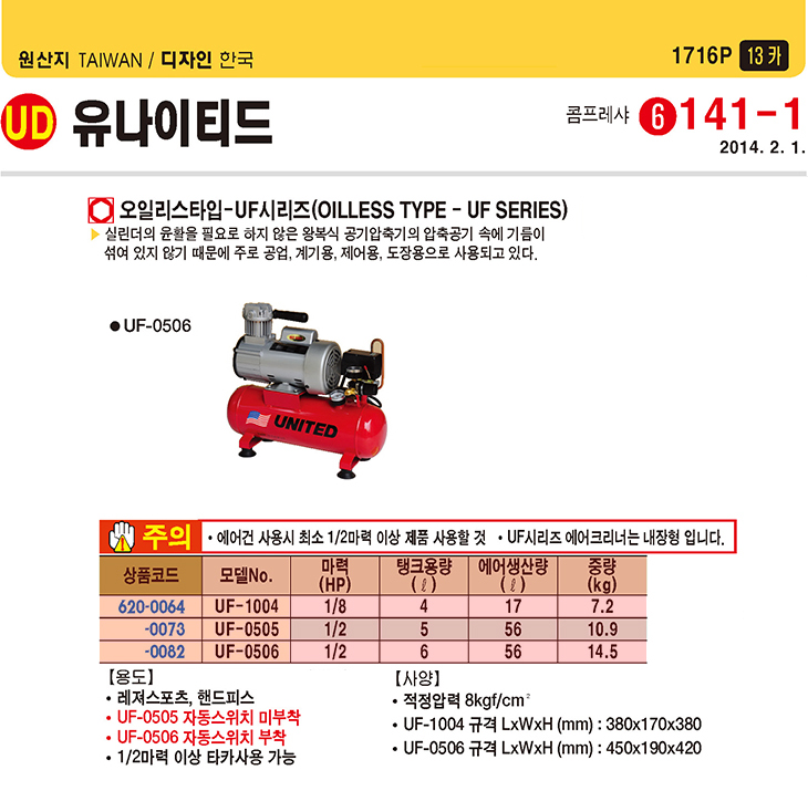 [À¯³ªÀÌÆ¼µå] ¿ÀÀϸ®½º ÄÞÇÁ·¹»þ(UF-1004, 1/8HP)(OILLESS TYPE UF SERIES)=>Á¦Ç°´ÜÁ¾!