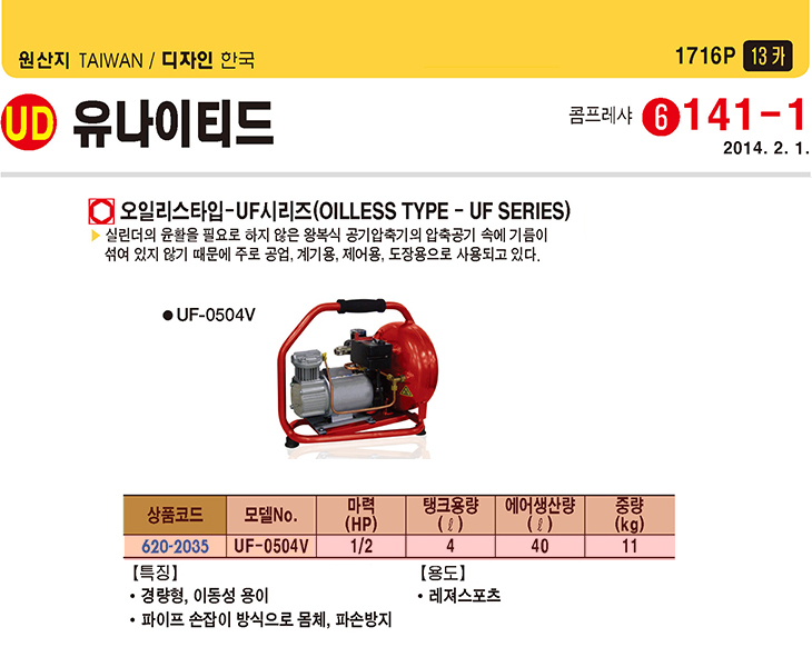 [À¯³ªÀÌÆ¼µå] ¿ÀÀϸ®½º ÄÞÇÁ·¹»þ(UF-0504V, 1/2HP, °æ·®Çü)(OILLESS TYPE UF SERIES)=>Á¦Ç°´ÜÁ¾!