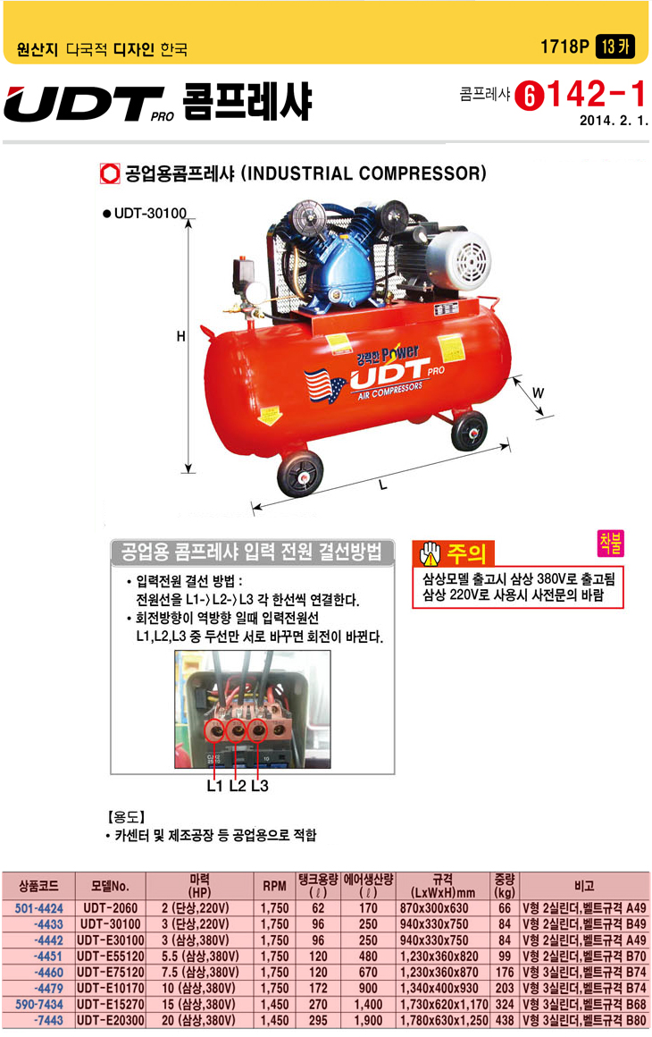 [UDT] °ø¾÷¿ë ÄÞÇÁ·¹¼Å(UDT-E15270, 15.0¸¶·Â/»ï»ó 380V/270¸®ÅÍ)(Industrial Compressor)