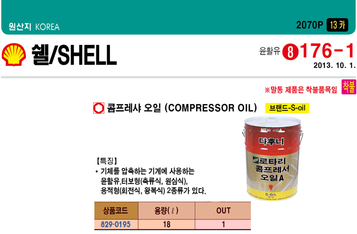 [¿¡½º¿ÀÀÏ] ÄÞÇÁ·¹»þ ¿ÀÀÏ(´ÙÈÄ´Ï ·ÎŸ¸® ÄÞÇÁ·¹¼­ ¿ÀÀÏA)(Compressor Oil)