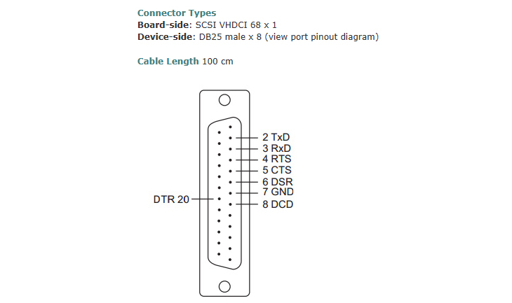 [SL] MOXA SCSI VHDCI 68 to 8xDB25M RS-232 Cable(CBL-M68M25x8-100 OPT8C+)
