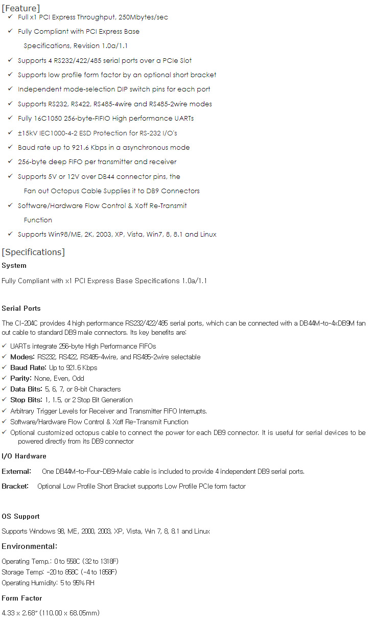 Á¦Ç°ºÐ·ù : 4Port RS-232/422/485 °â¿ë PCI-E Card