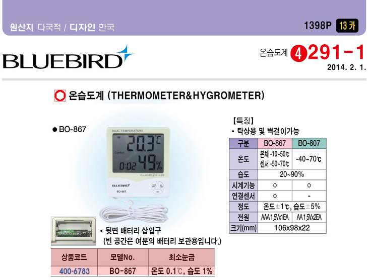 [ºí·ç¹öµå] ¿Â½Àµµ°è(BO-867, ¼¾¼­Å¸ÀÔ)(Thermometer and Hygrometer)