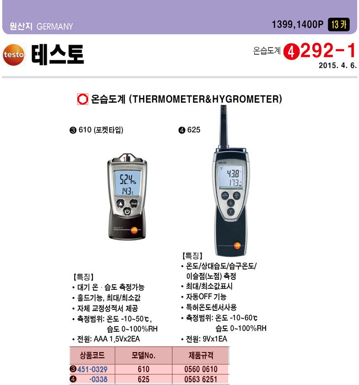 [Å×½ºÅä] TESTO ¿Â½Àµµ°è(625, -10~60¡É/0~100%RH)(Thermometer and Hygrometer)