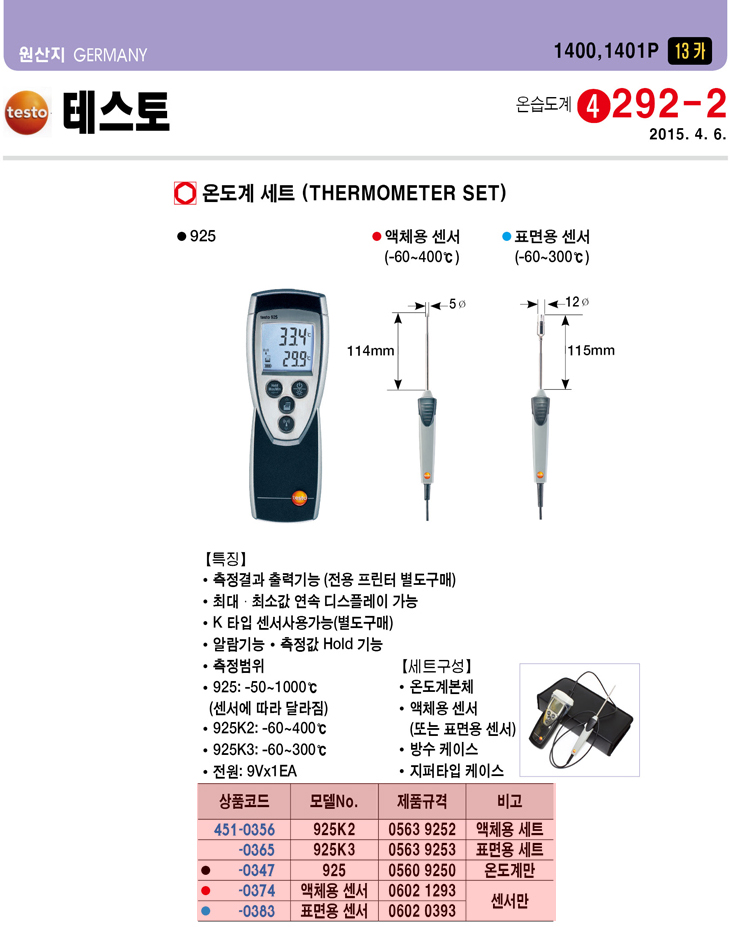 [Å×½ºÅä] TESTO Ç¥¸é¿ë ¼¾¼­(925¿Âµµ°è¿ë, 0602 0393, Ç¥¸é¿ë ¼¾¼­¸¸)(Thermometer Sensor)